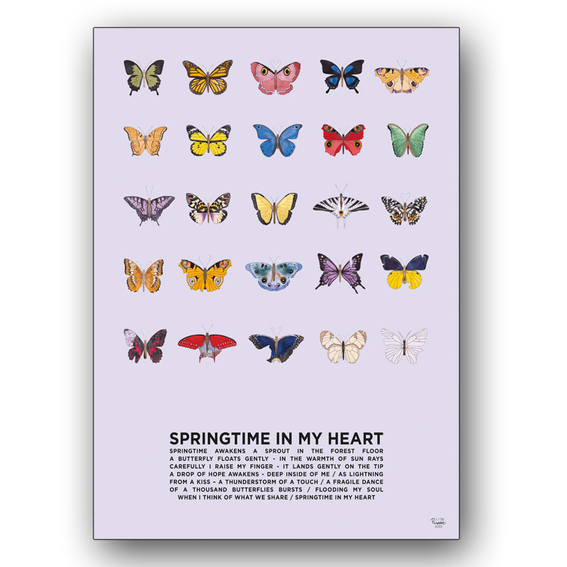 Dette værk består af 25 sommerfugle, der alle er håndmalede. De er her samlet i et kunst-print, der kun kommer i et begrænset oplag.