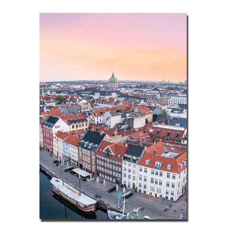 Klokkerne på Frederikskirken ringer bag smukke Nyhavn.