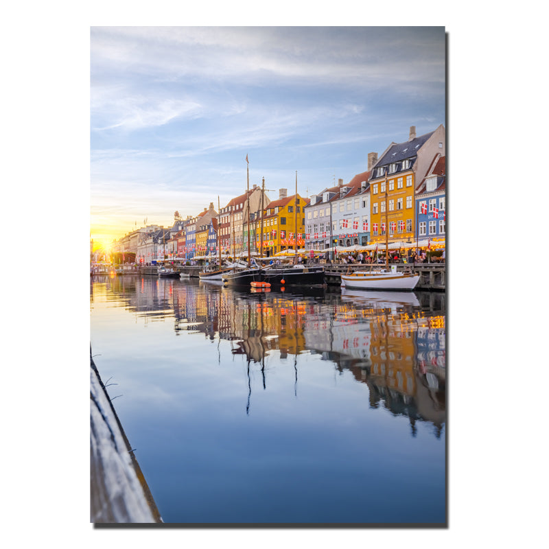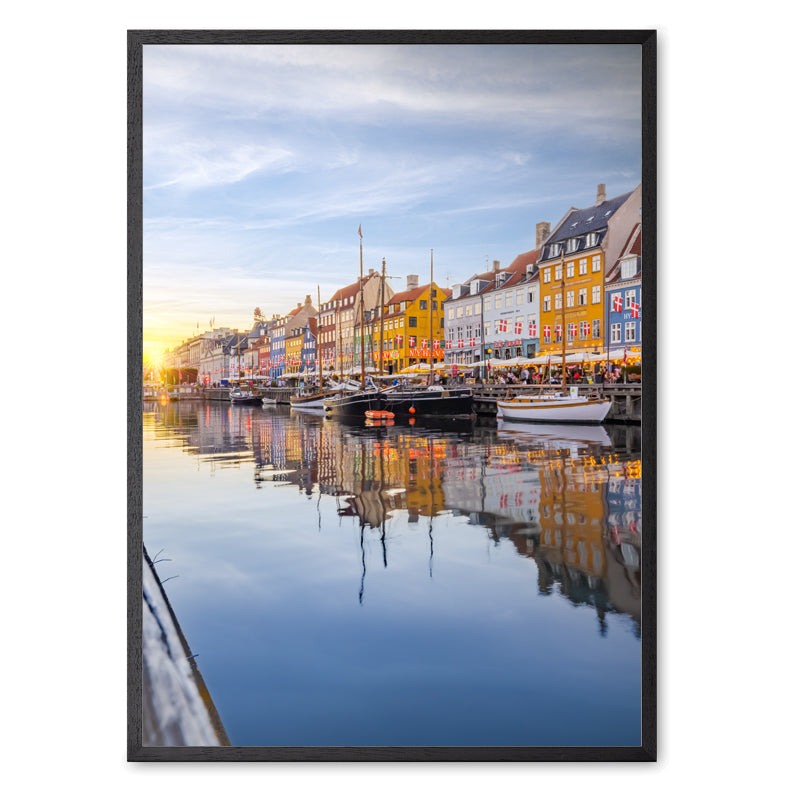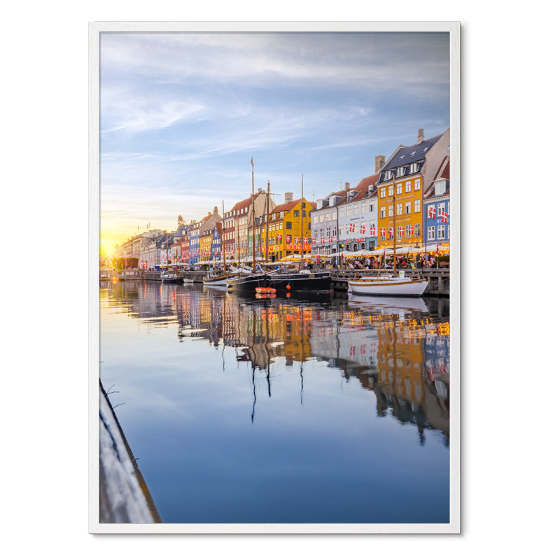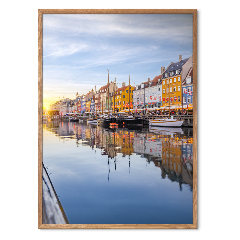 Nyhavn under EM-festlighederne i 2021. Nyhavns smukke huse findes i alle regnbuens farver, mens daggry er lige om hjørnet.