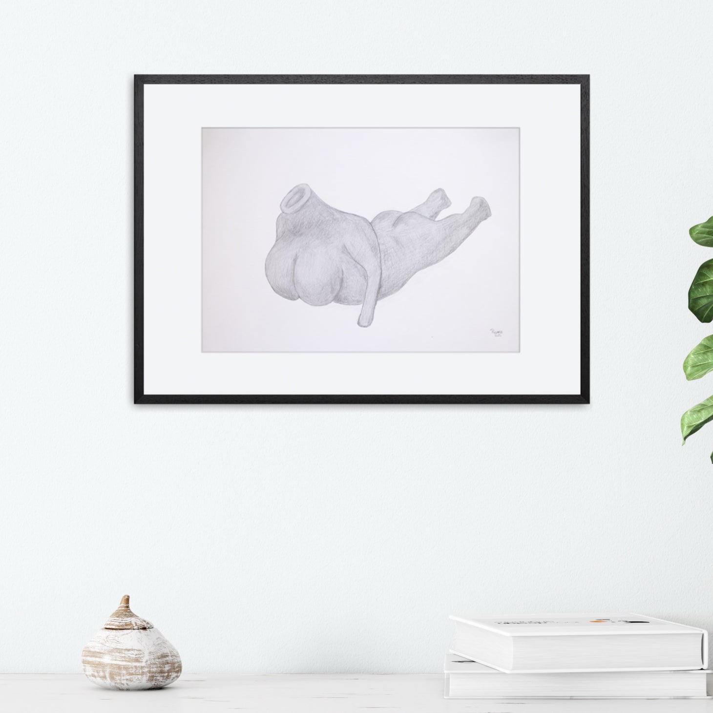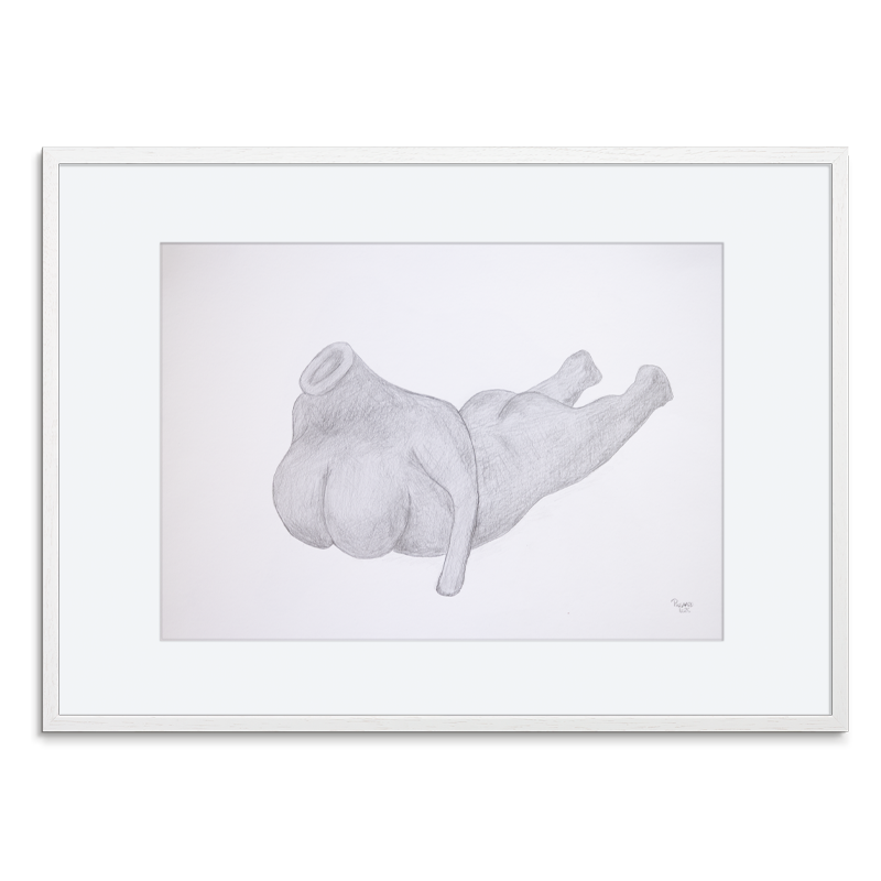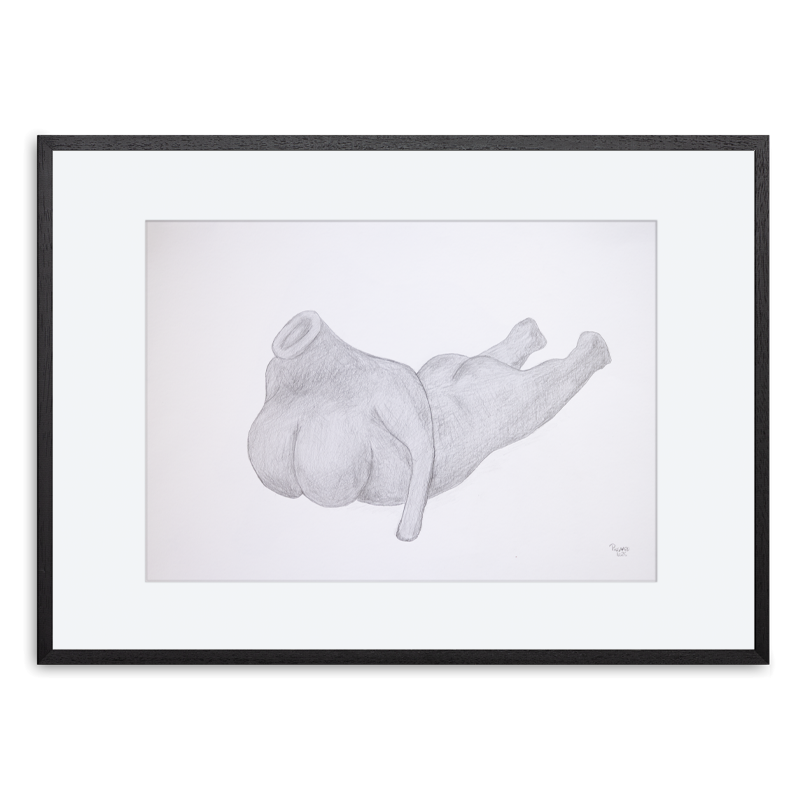 Skitsetegningen er udført forud for den endelige tilblivelse af bronzeskulpturen og har fungeret som et udgangspunkt for form, proportioner og det samlede udtryk i det færdige værk.