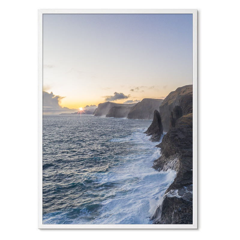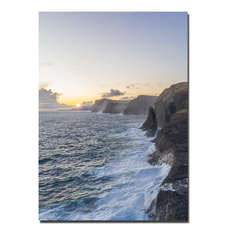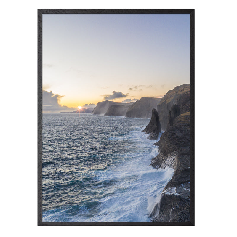 Fotografier er taget på Færøerne ved Bøsdalafossur vandfald, der altid har udsigt til solnedgangen i vest.