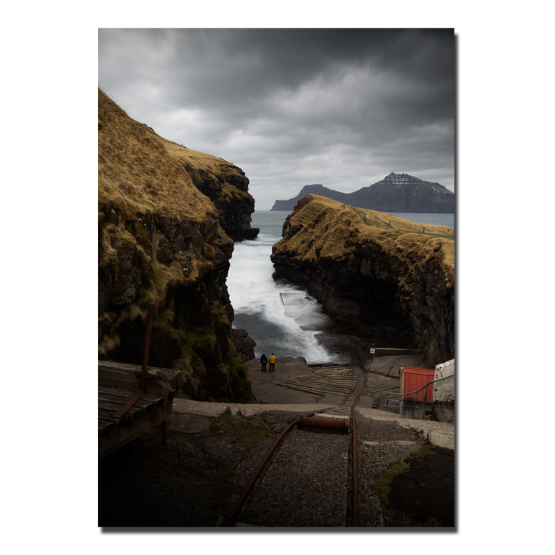 I den færøske bygd, Gjógv, ligger en af de smukkeste slugter på Færøerne. Slugten er i århundreder blevet brugt af de lokale som naturhavn. Herfra sejlede fiskerne ud mellem de livsfarlige klipper for at nå det åbne hav. Skinnerne fra havnefronten, der fører op til land, er blevet brugt til at trække skibe i sikkerhed fra den livsfarlige kombination af store lunefulde bølger og skarpe klipper.