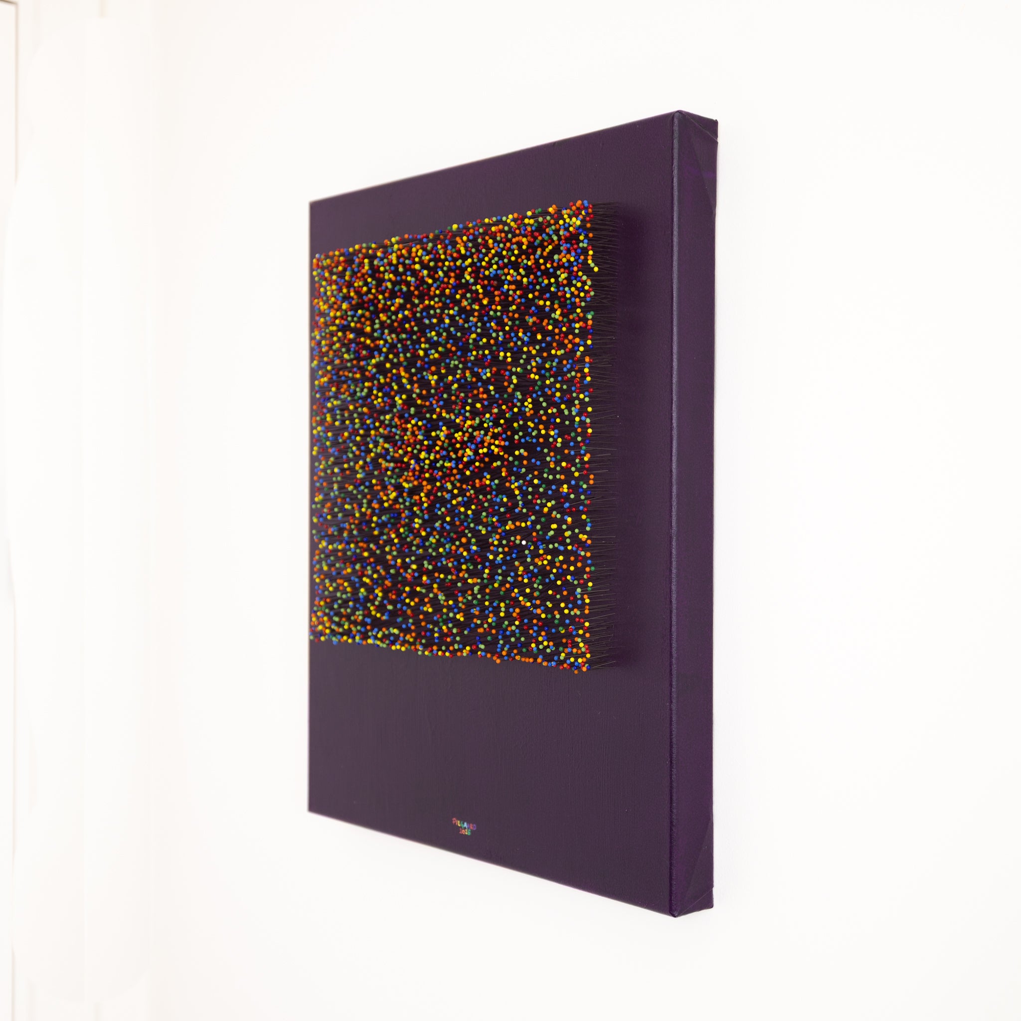 Du kan ikke tæmme en regnbue. Men du kan forsøge at stikke den med nåle. Dette mixed media-værk er skabt med akryl, lærred og rigtige nåle, som fysisk sidder i værket – hver og én sat med omhu og eftertanke. Nålene repræsenterer de stik, man som Regnbueperson får i løbet af et liv: ord, man ikke glemmer. Tavshed, der larmer. Døre, der aldrig blev åbnet. Men værket handler ikke kun om smerte. Det handler også om det, der vokser under overfladen. Om styrke. Om mod. Om selvrespekt. For hver en nål bliver der også født en ny farve, en ny tro, en ny stemme. Et værk, der mærker – og minder.