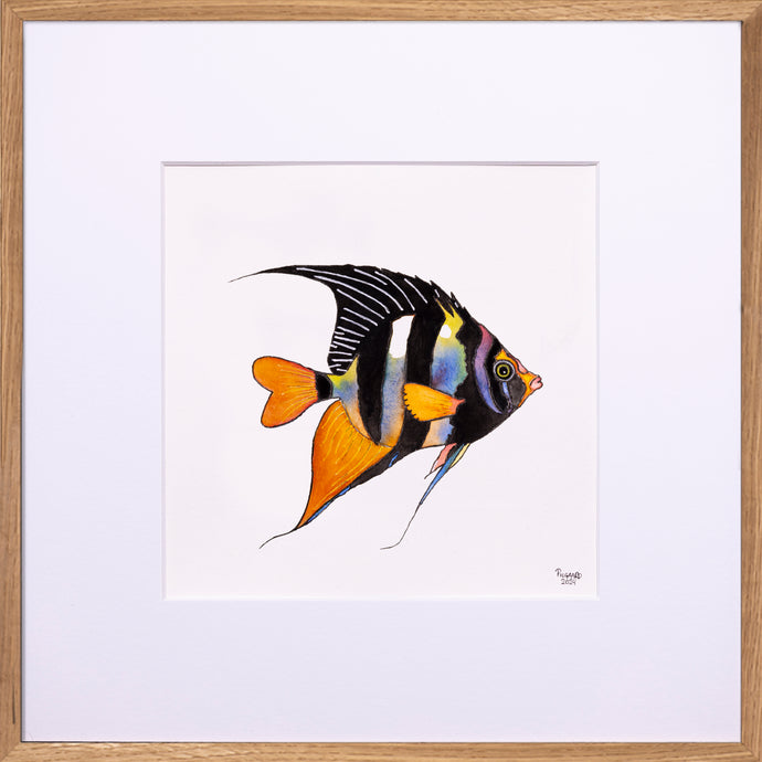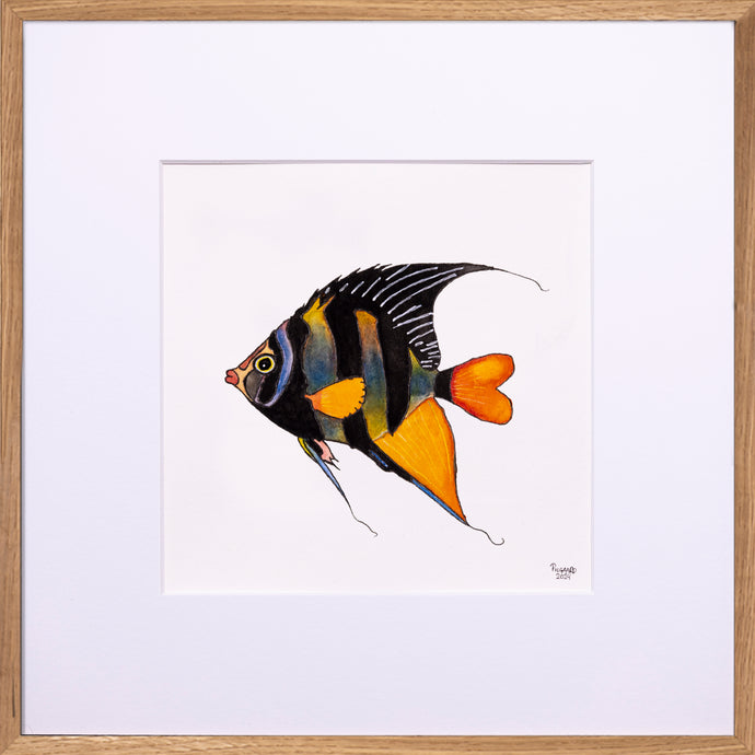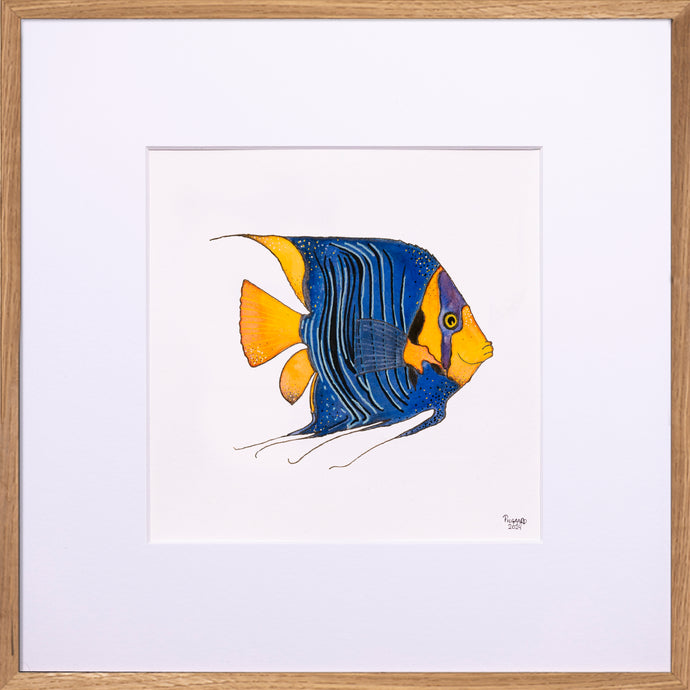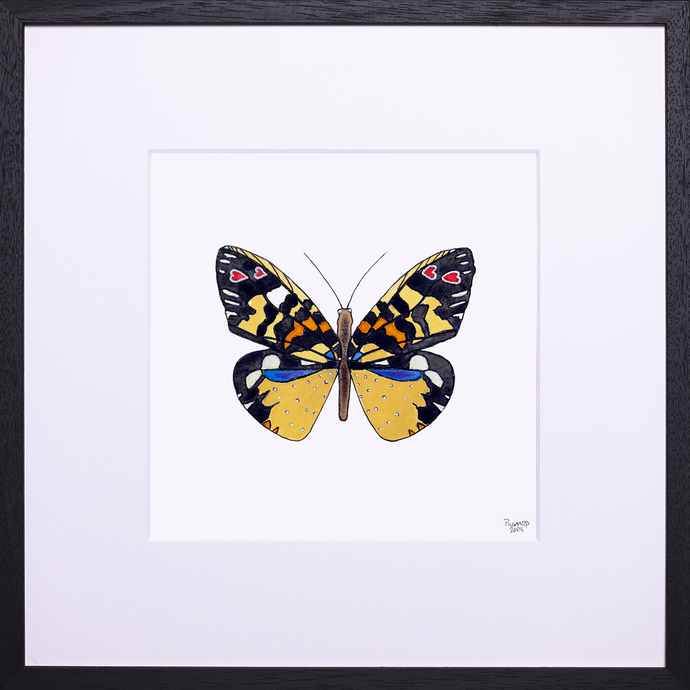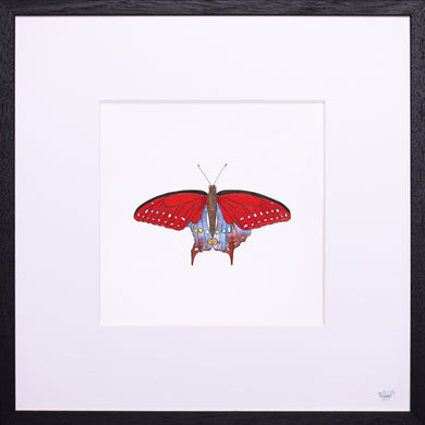 Dette er et værk, der har fløjet med mig på en særlig rejse. Det har tidligere været udstillet på både Gallarí Havnará i Tórshavn og Designer Zoo i København, hvor det har delt væg med nogle af mine mest elskede sommerfugle.